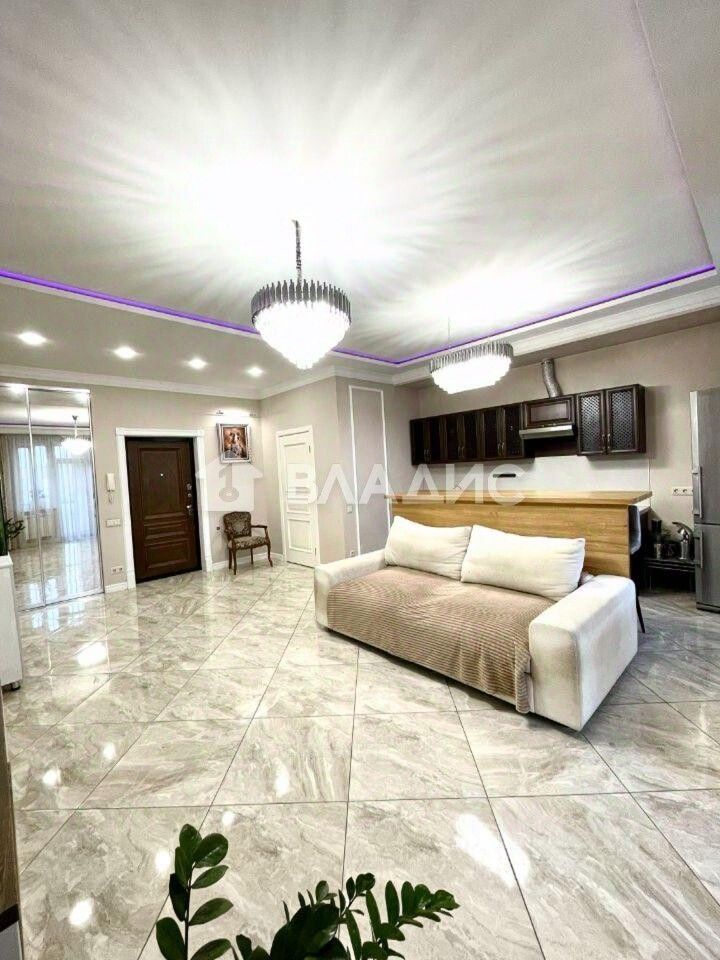 Общая площадь квартиры — 80 кв. м, жилая — 45 кв. м, площадь кухни — 20 кв. м., полы испанская плитка (керамогранит), в зоне кухни пол с подогревом.