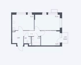 Срок сдачи 26 год. Квартира расположена на 12 этаже 17-этажного монолитного дома. Общая площадь — 55 кв. м, жилая — 26 кв. м, площадь кухни — 13 кв. м. Комнаты изолированы, окна выходят на улицу.