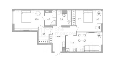 Продаётся 2-комнатная квартира общей площадью 76.4 кв.м., на 11 этаже в строящемся доме (Корпус 2), срок сдачи: IV-кв. 2025.