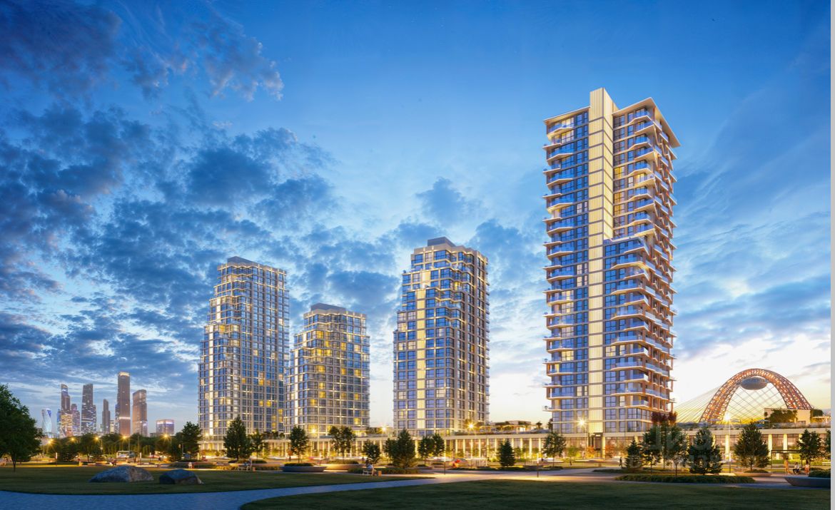 Рисунок квартала формируют четыре разновысотные башни с приватными террасными уступами.