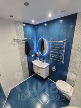 Санузел объединен, под плиткой теплый пол. В санузле организована ниша под стиральную машину и хозблок. В обеих комнатах установлены кондиционеры, пользовались ими редко.