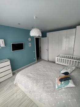 В 2019 г. в квартире был сделан стильный лаконичный ремонт, заменена вся электропроводка и трубы. На полу в комнатах уложен ламинат. По всей квартире натяжные потолки.