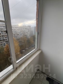 Балкон тоже сделан, отшпаклеван, покрашен, установлены раздвижные окна, уложена плитка, проведено освещение, есть розетка, установлен вместительный шкаф.
