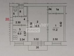 Продаётся двухкомнатная квартира площадью 43.4 м² на 5 этаже тёплого кирпичного пятиэтажного дома.