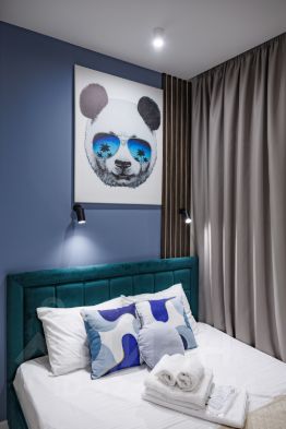 - Удобства: полноразмерная кровать king-size, ТВ, кухонная техника, гигиеничные условия проживания