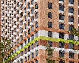 На первых этажах разместятся магазины и различные сервисы услуг. В зелёных дворах без автомобилей будут обустроены детские площадки и места для отдыха.