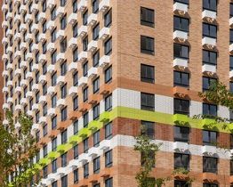 На первых этажах разместятся магазины и различные сервисы услуг. В зелёных дворах без автомобилей будут обустроены детские площадки и места для отдыха.