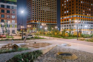 На первых этажах разместятся магазины и различные сервисы услуг. В зелёных дворах без автомобилей будут обустроены детские площадки и места для отдыха.