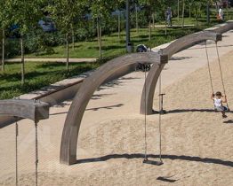 На первых этажах разместятся магазины и различные сервисы услуг. В зелёных дворах без автомобилей будут обустроены детские площадки и места для отдыха.