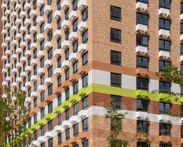 На первых этажах разместятся магазины и различные сервисы услуг. В зелёных дворах без автомобилей будут обустроены детские площадки и места для отдыха.