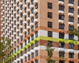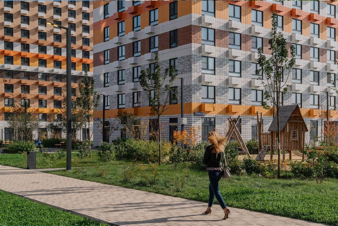 На первых этажах разместятся магазины и различные сервисы услуг. В зелёных дворах без автомобилей будут обустроены детские площадки и места для отдыха.