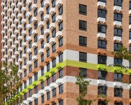 На первых этажах разместятся магазины и различные сервисы услуг. В зелёных дворах без автомобилей будут обустроены детские площадки и места для отдыха.