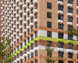 На первых этажах разместятся магазины и различные сервисы услуг. В зелёных дворах без автомобилей будут обустроены детские площадки и места для отдыха.