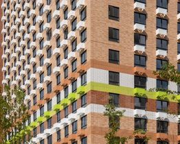 На первых этажах разместятся магазины и различные сервисы услуг. В зелёных дворах без автомобилей будут обустроены детские площадки и места для отдыха.