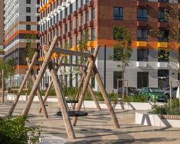 На первых этажах разместятся магазины и различные сервисы услуг. В зелёных дворах без автомобилей будут обустроены детские площадки и места для отдыха.