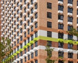 На первых этажах разместятся магазины и различные сервисы услуг. В зелёных дворах без автомобилей будут обустроены детские площадки и места для отдыха.