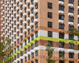 На первых этажах разместятся магазины и различные сервисы услуг. В зелёных дворах без автомобилей будут обустроены детские площадки и места для отдыха.