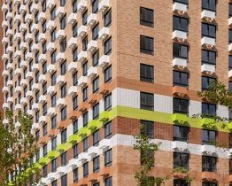 На первых этажах разместятся магазины и различные сервисы услуг. В зелёных дворах без автомобилей будут обустроены детские площадки и места для отдыха.