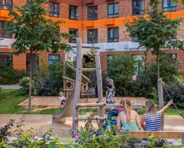 На первых этажах разместятся магазины и различные сервисы услуг. В зелёных дворах без автомобилей будут обустроены детские площадки и места для отдыха.
