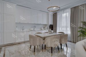 Квартира выполнена в дизайнерском стиле с использованием высококачественных отделочных материалов, таких как: