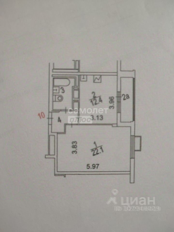 Просторная изолированная комната площадью 22,1 м² и большая кухня 12,4 м².