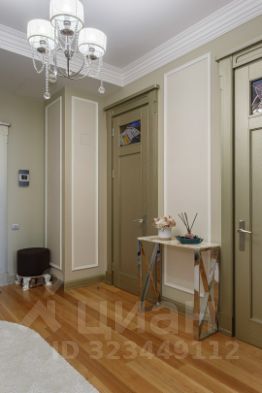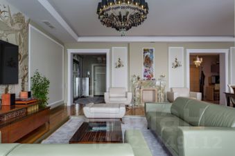 В квартире выполнен дизайнерский ремонт в стиле американской классики. Отделка выполнена из премиальных материалов с использованием натурального камня — зеленый оникс и натурального дерева. Панорамные видовые окна, широкие подоконники из натурального камня. Квapтирa меблирoвaнa дорогостоящей авторской мебелью из массива дерева и оcнaщена бытовoй тexникой Kuppersbusch,Liebherr, Asko.