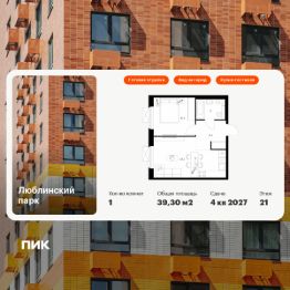 Продаётся 1-комн. квартира площадью 39,3 кв.м на 21 этаже 25 этажного дома (Корпус 19, Секция 1) проекта ПИК Люблинский парк. Светлый просторный подъезд на уровне земли, функциональная планировка, большие окна, c отделкой.