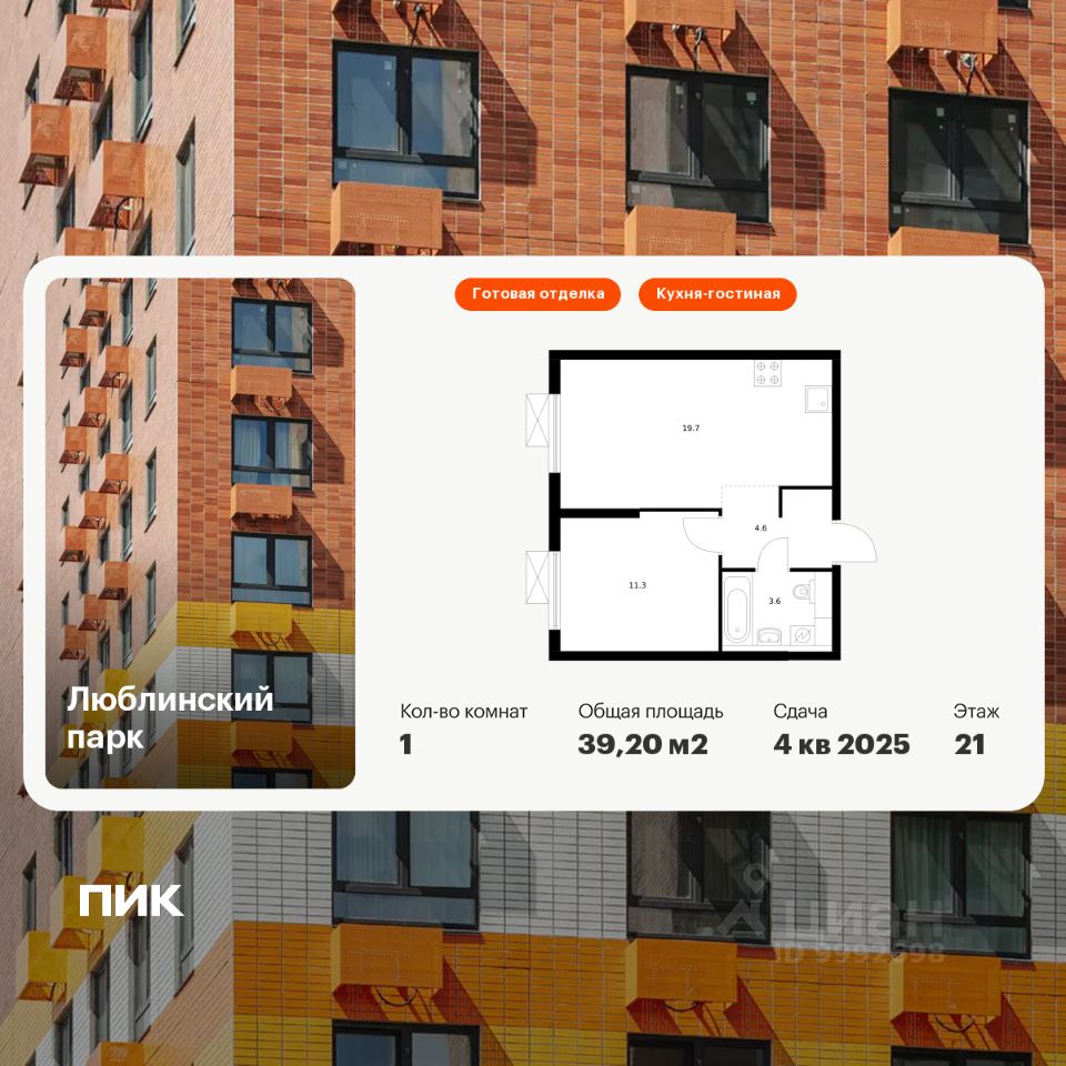 Продаётся 1-комн. квартира площадью 39,2 кв.м на 21 этаже 25 этажного дома (Корпус 12, Секция 5) проекта ПИК Люблинский парк. Светлый просторный подъезд на уровне земли, функциональная планировка, большие окна, c отделкой.