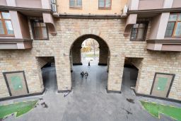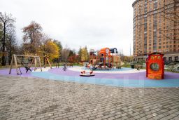 Территория огорожена, круглосуточная охрана, видеонаблюдение. Концепция двор без машин, Подземный паркинг. Для жителей дома предусмотрена прогулочно-игровая зона на втором этаже комплекса, мини-парк на первом этаже с местом для дрессировки собак, боулинг, каток, кафе, пекарня, продуктовый супермаркет, детский сад, студии раннего развития, английская школа. Фитнес -студия Онегин (проход из квартиры не выходя на улицу).