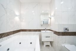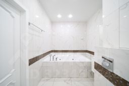 В квартире сделан свежий стильный дизайнерский ремонт в приятных тонах. На полу эксклюзивный паркет дерева Мербау. Достойные соседи. Общая площадь 117 . 2 санузла. Гостевая зона:  кухня-гостиная, гостевой санузел с душем. Приватная зона - 2 спальни, санузел с джакузи 2 м в длину, 1,7 в ширину, просторная гардеробная, лоджия утеплена, оборудован кабинет.