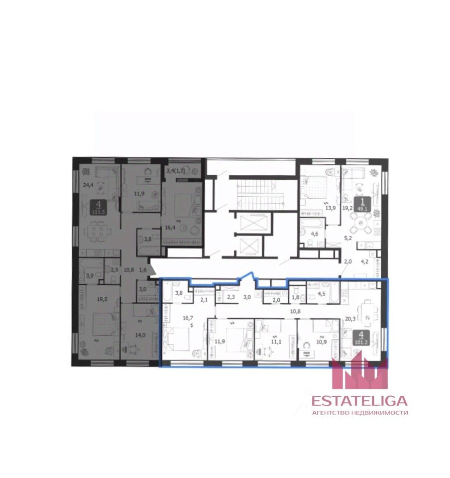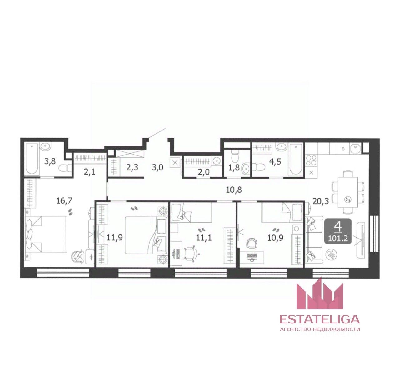 Id 57879. Представляем вашему вниманию идеальную квартиру для большой и дружной семьи в современном ЖК SHAGAL! Здесь хватит места всем! Четыре комнаты, включая три изолированные комнаты, позволят каждому члену семьи иметь свое личное пространство, а мастер-спальня станет настоящим оазисом спокойствия и уединения для родителей.