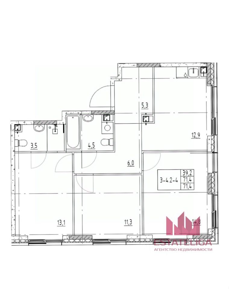 Id 57881. Продуманная планировка: Три изолированные комнаты идеально подойдут для детских, гостевой или рабочего кабинета, обеспечивая приватность и комфорт.