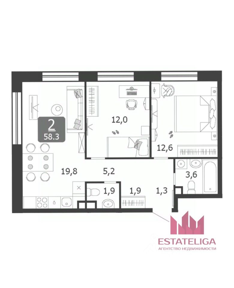 Id 57883. тильная евротрешка в ЖК SHAGAL: Пространство и комфорт для современной жизни!