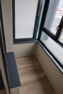 Окна из кухни-гостиной и детской — во двор, из второй спальни — на улицу.