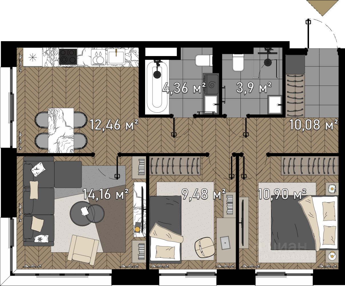 Продаются 3-комн. апартаменты, 67,3 м²