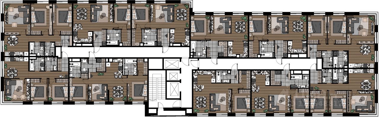Апартаменты в готовом квартале бизнес-класса от компании St MICHAEL. Всего в комплекс входят 3 стильных высотных корпуса с модной архитектурой, собственным фитнесом и сервисами премиальных отелей. Отличная транспортная доступность и расположение в окружении крупных парковых зон характеризует комплекс как особенно привлекательный для жизни и инвестиционных вложений. На верхних уровнях комплекса расположены функциональные пространства с высотой потолка до 3,17 метров и панорамными окнами. В угловых апартаментах благодаря сплошному остеклению реализован эффект стеклянной стены. Элегантные лобби с дизайнерской отделкой премиальными материалами, lounge-зона для отдыха и встреч с гостями, кафе с камином и легким эмбиентом, стильная отделка холлов гармонично перекликается с фасадами в стиле архитектуры Нью-Йорка. "Зорге 9" — это элегантные лобби с дизайнерской отделкой премиальными материалами, высокие потолки, панорамные окна, благоустроенный просторный двор в одном из лучших районов для жизни в Москве. Роскошная инфраструктура комплекса: консьерж-сервис, подземный паркинг, цифровой лифт, вход по Face ID, свой фитнес-клуб с бассейном, парк с сухим фонтаном, магазины и рестораны. Представлен широкий выбор вариантов площадей от 27 до 81 кв. м, свободной планировки, с окнами в пол и высотой потолков 3,15 м. Есть уникальные форматы пространств апартаменты с террасами, пентхаусы и хай-флеты. "Зорге 9" СДАН, все корпуса введены в эксплуатацию.