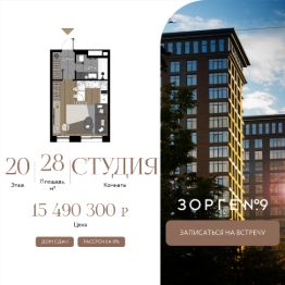 "Зорге 9" — готовый квартал апартаментов с премиальными сервисами на Ходынке. В трех корпусах с панорамными окнами предусмотрены уникальные форматы площадей, удовлетворяющие самый взыскательный вкус. В 7 минутах ходьбы от "Зорге 9" расположены 4 станции метро: Полежаевская", "Хорошевская", "Зорге" и "Хорошево". До делового центра "Москва-Сити" 10 минут на автомобиле. Простота форм, строгие линии, панорамные окна, архитектурное освещение и арт-объекты поддержат атмосферу роскоши и комфортной жизни на Ходынке. Именно за яркую архитектуру апарт-комплекс "Зорге 9" получил престижную международную премию European Property Awards. Комплекс полностью введен в эксплуатацию. "Зорге 9" — территория инноваций. Высокие потолки и панорамные окна Guardian ClimaGuard Solar с энергоэффективным "умным" напылением. Предусмотрен ряд премиальных сервисов: вход по Face ID, мобильное приложение резидента, дающее доступ ко всем услугам в один клик, 500 видеокамер на территории, двухуровневый подземный паркинг с автоматическим шлагбаумом, зарядкой для электромобилей, велосейфом и станцией подкачки шин. В "Зорге 9" можно рассмотреть варианты площадей от 27 до 81 кв. м, свободной планировки, с окнами в пол и высотой потолков 3,15 м, а также уникальные форматы пространств. Апартаменты с террасами позволят создать дополнительное рабочее пространство или зону отдыха на свежем воздухе, а тканевые маркизы помогут создать тень и повысить уровень приватности. Угловое остекление станет особой изюминкой и украсит любой интерьер. На последних этажах предусмотрены пентхаусы с каминами и выходами на кровлю: от 150 кв. м жилья high-уровня с максимальным уровнем инсоляции — на потолках в пентхаусах появятся так называемые "световые фонари". "Зорге 9" СДАН, все корпуса введены в эксплуатацию.