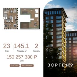 "Зорге 9" — готовые апартаменты бизнес-класса на Ходынке. 10 минут до Москва-Сити. Архитектура: 3 современных корпуса с фасадами в стиле архитектуры Нью-Йорка и с сервисами премиальных отелей, высотой до 23 этажа. Строгие линии, панорамные окна создают ощущение неподдельной роскоши и комфортной жизни в сердце мегаполиса. Проект награжден авторитетной премией European Property Awards. Резиденции: Свободная планировка, небольшая глубина этажа, огромные панорамные окна в пол до 3,6 м и высота потолков до от 3,3 до 4,3 м позволяют реализовать самые смелые концептуальные идеи и создать идеальный интерьер с учетом всех пожеланий. Вдохновляющие виды на город украсят ваш апартамент лучше любой картины. Есть возможность приобретения дизайн-проекта и полной меблировки апартаментов от партнеров девелопера. Расположение: 3 мин. пешком до парка Березовая роща 10 мин. пешком до Ходынского поля 10 мин. до ТЦ Авиапарк 30 минут до Шереметьево 10 мин до Москва-Сити или 1 станция до Москва-Сити 5 минут до ТТК 4 станции метро в шаговой доступности: 6 мин м. Полежаевская (фиолетовая ветка) 7 мин МЦК Зорге (МЦК) 7 мин м. Хорошевская (голубая ветка) 10 мин МЦК Хорошёво (МЦК) Благоустройство: Собственный парк 2 га с амфитеатром и поющими фонтанами. В парке высажено 136 деревьев и более 11 000 кустов и мелких растений из немецких питомников. Площадка для йоги и воркаут-зона со спортивными площадками. Теннисные столы и детский плейхаб Две башни Авторское гранд-лобби В лобби предусмотрена лаундж-зона, чайная с камином, комната для хранения велосипедов и колясок. Доступ по системе FACE ID. В отделке лобби и лифтовых холлов использован декоративный камень итальянского бренда Atlas Concorde Пентхаусы На верхнем уровне комплекса расположены роскошные просторные пентхаусы с высотой потолка до 4,2 метра и панорамными окнами до 3,6 метров, открывающими великолепные виды на столицу. Пентхаусы с выходами на собственные приватные террасы на кровле, площадью от 150 кв. м являются жильем high-уровня, демонстрирующим высокий статус владельца.