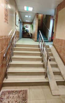 Дом в хорошем состоянии, подъезд чистый и ухоженный, есть пассажирский лифт и мусоропровод. Придомовая территория благоустроена, рядом находится детская площадка.