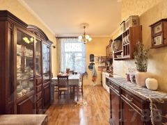 Эта квартира поражает своей просторной кухней и высокими потолками, создающими атмосферу легкости и свободы. Из окон открывается захватывающий вид на тихий зеленый двор, что позволяет наслаждаться спокойствием и гармонией городской жизни. Удобная планировка включает в себя кухню-гостиную и три спальни, что идеально подходит как для семейной жизни, так и для комфортного проживания с друзьями. Раздельный санузел добавляет дополнительный комфорт.