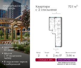 Квартира на 2 этаже в жилом комплексе премиум-класса "Преображенская площадь". Общая площадь: 72.1 кв.м.