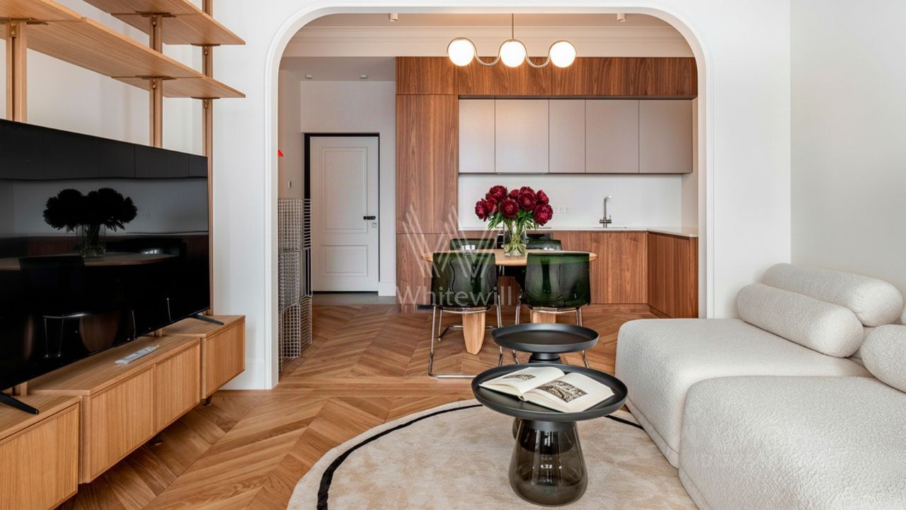 Квартира с двумя спальнями в квартале бизнес-класса "Сердце столицы" на набережной Москвы-реки. Квартира площадью 72 м² расположена на восемнадцатом этаже, откуда открывается прямой вид во внутренний парк и набережную Москвы-реки. Установлена система индивидуального кондиционирования.