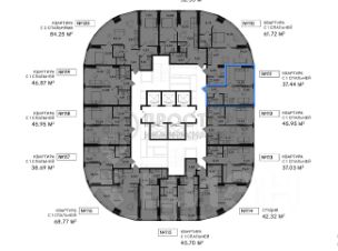 Квартира расположена на 13 этаже 41-этажного монолитного дома.