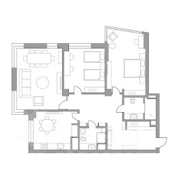 К продаже предлагается квартира площадью 126 м² с ремонтом и мебелью в классическом стиле. Функциональная планировка включает в себя холл, кухню, просторную столовую-гостиную, две спальни и два санузла.