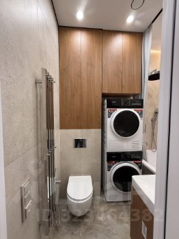 Ванная комната просторная, совмещённая, отделана испанской плиткой и оборудована тёплым полом, стиральной и сушильной машинами. В каждой комнате установлены кондиционеры, по всей площади выполнена шумо- и гидроизоляция, установлены датчики протечек. Квартира продаётся с мебелью и всей техникой, включая два телевизора, — заезжай и живи.