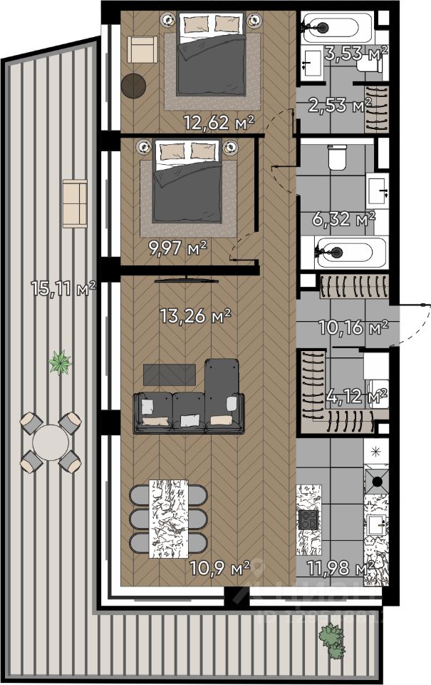 Премиальный "Квартал Серебряный бор" — проект в престижной локации с богатой историей и шаговой доступностью до набережной Москвы-реки и парка Серебряный бор. Архитектура Разрабатывалась Apex Project Bureau совместно с британским архитектором Саймоном Скоттом — признанными экспертами в России и мире. Главной идеей было создание проекта, гармонично сочетающимся с природным памятником — парком Серебряный бор. Рисунок квартала формируют четыре разновысотные башни с приватными террасными уступами. В больших панорамных окнах отражается небо, отчего здания выглядят воздушными. Благодаря технологичным алюминиевым витражам площадь остекления максимальна — даже зимой квартиры будут наполнены естественным светом. Благоустройство Проект благоустройства "Квартала Серебряный бор" был разработан знаменитым архитектурным бюро GAFA Architects. Специалисты создали благоустройство, которое не только дополняет архитектуру комплекса, но и становится продолжением природного ландшафта. Предусмотрено несколько ландшафтных зон для всех возрастов и разных активностей. В жаркий полдень жители смогут насладиться теплым солнцем возле открытого бассейна на шезлонге или на мягком газоне. Здесь же можно наблюдать восхитительные закаты. Для детей предусмотрены игровые площадки и полноценный игровой плейхаб "Шатер", рассчитанные на разные возрастные группы. Для мам будет беседка, чтобы можно было с комфортом наблюдать за детьми. А для подростков и их родителей будет работать воркаут зона, которая вполне может заменить фитнес-клуб. Локация Жители пользуются всеми преимуществами мегаполиса и развитой транспортной сетью: одинаково быстро до Кремля и "Москва-Сити". В 10 минутах пешком — Серебряный бор: пляжи, сапсёрфинг, прогулки, обеды на свежем воздухе. В 15 минутах на авто — парк "Крылатские холмы" (175 гектаров, 60 м над рекой), где горный рельеф сочетается с лесами из берёз, дубов, клёнов и лип. Редкие форматы планировок • Квартиры с просторными террасами — выход на свежий воздух прямо из дома, гармония природы и городской роскоши. • Квартиры с угловым остеклением — максимальный свет и панорамные виды на природу и город, создающие атмосферу свободы и комфорта. • Квартиры с каминами — акцент на атмосфере уюта и тепла. • Урбан-виллы — сочетание пространства загородной резиденции и преимущества городской жизни для тех, кто ценит приватность и комфорт. • Пентхаусы — панорамное остекление, террасы с видами на Серебряный бор и "Москва-Сити", индивидуальные планировки для создания дома мечты.