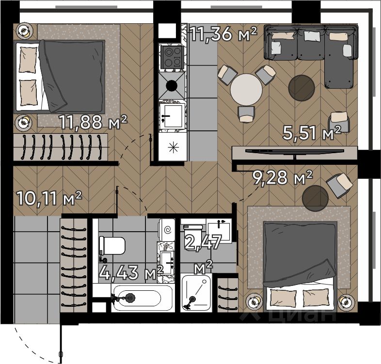 Площадь кухни11,4 м²