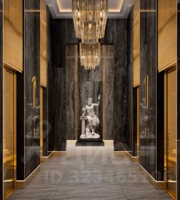 Просторное гранд-лобби с высотой потолка 7м. Дизайн Гранд Лобби выполнен в стиле классических люксовых отелей с использованием премиальных материалов.