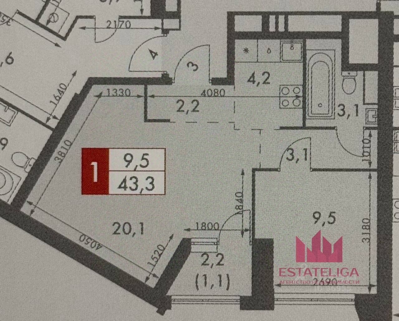 Площадь: 43.3 м²