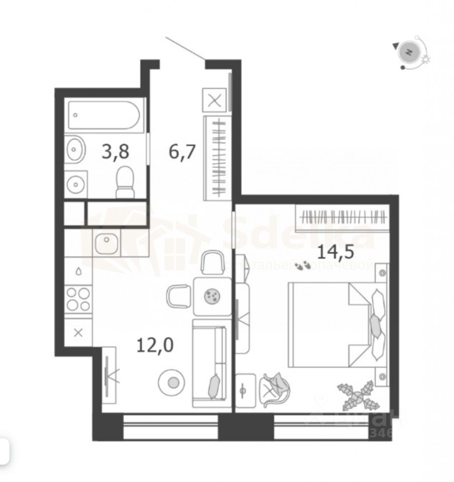 Это идеальное место для одного человека или молодой семьи — здесь хватит места и для отдыха, и для работы, и для гостей.